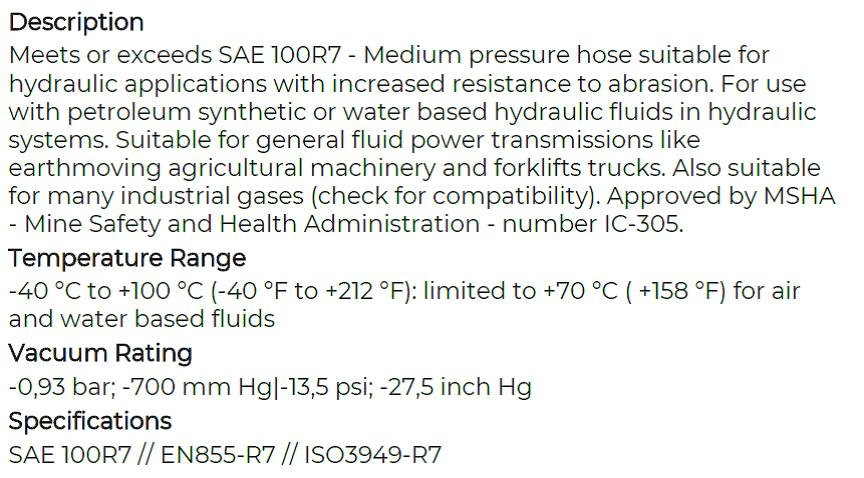 Thermoplastic hose MSHA approved for hydraulic applications from 70 to 210 bar (1000 to 3000 psi)