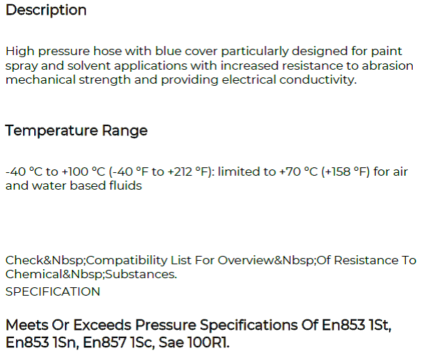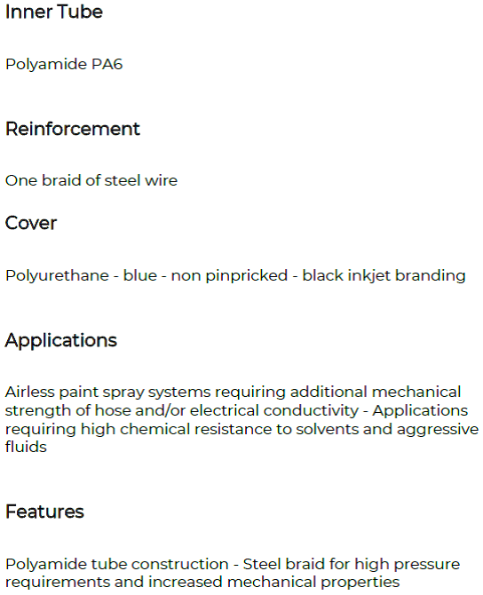Thermoplastic conductive hose for high pressure paint spray and solvent applications from 115 to 360 bar (1600 to 5200 psi)